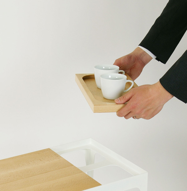 The table top is formed from three removable trays.