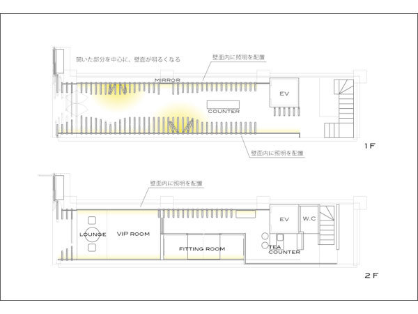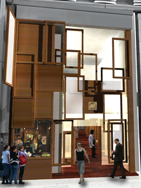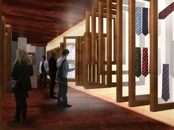 老舗の歴史を積み重ねたように、動くクローゼット・フレームを積層させた空間。